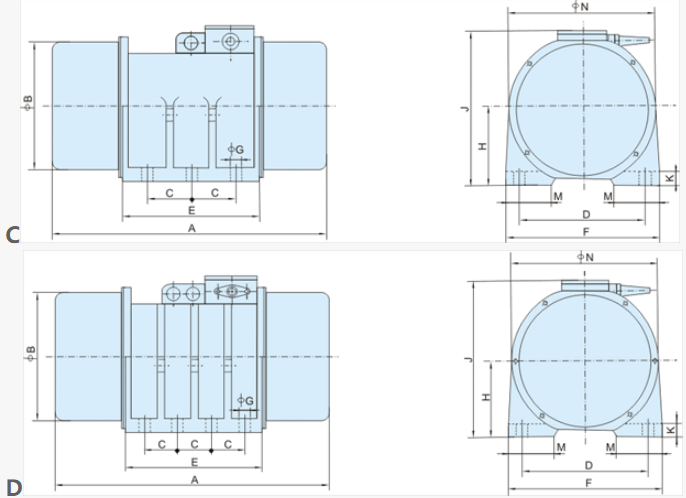 XVM-A系列振動電機是在雙軸伸的轉子軸兩端各安裝一組可調偏心塊,利用偏心塊旋轉產生的離心力得到激振力。振動電機的激振力大、能耗小、噪聲低、壽命長。它使用于料倉、料斗、溜槽的倉壁振動,還是自同步直線振動篩、振動給料機、振動輸送機等各種振動機械的激振源,是冶金、礦山、煤炭、建材、化工等部門的理想設備,振動篩有廣泛的應用范圍。