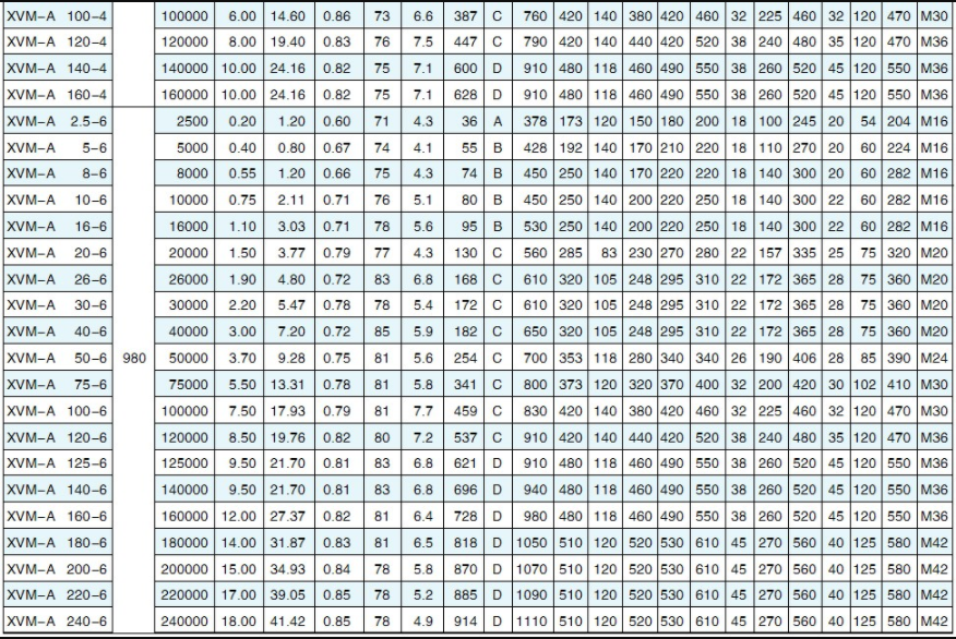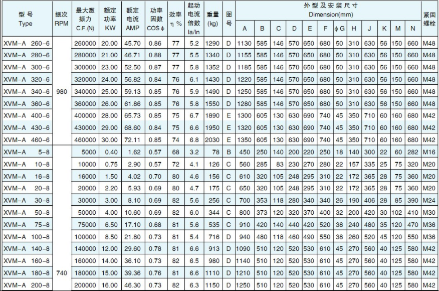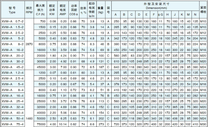 XVM-A系列振動電機相關技術參數: